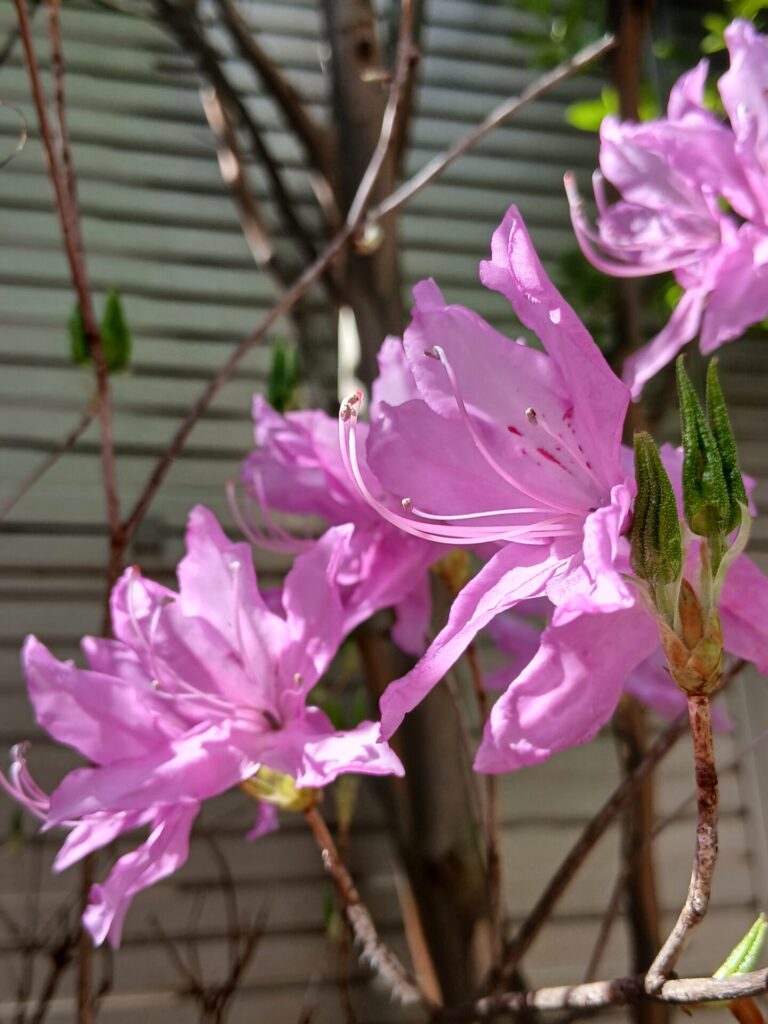葉っぱが3枚セットで出ていて、葉よりも先に花が咲いているのでおそらく「トウゴクミツバツツジ」だと思います。(ChatGPTに聞きました)