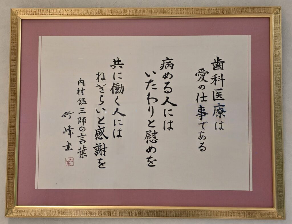 院長の理念に沿った書を、書道家の患者様に書いていただきました。